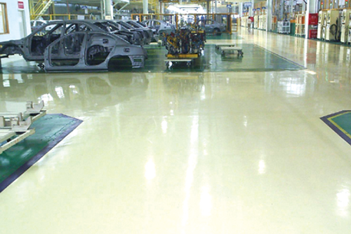 6、涂刷罩面清漆:本工序可根據用戶需要選擇使用;溶劑型環氧面漆施工完畢12~24小時后,即固化至行人不留印跡后,用環氧耐磨層面漆滾涂一遍,可大大提高地坪光潔度和耐用性